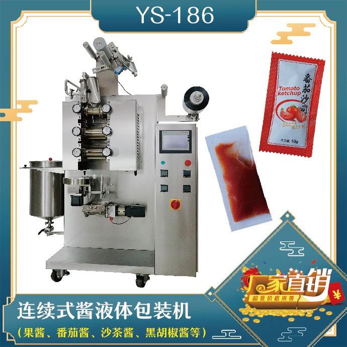 YS-186XAJ High speed continuous packing machine for sauceYS-186XAJ 連續(xù)式高速醬體包裝機(jī)特 點(diǎn) Characteristic適用于番茄醬、咖喱醬、芝麻醬、油包、醋包、油潑辣子等醬料、液體等物品的計(jì)量包裝。Suitable for the metering and packaging of pastes and liquids like tomato sauce, curry sauce, sesame paste, oil s…