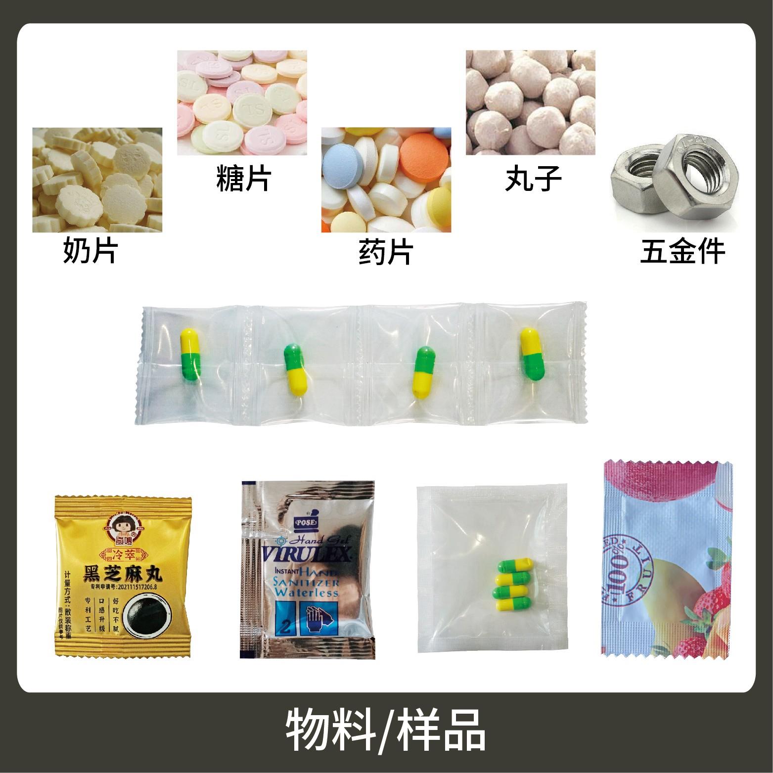 適用于食品、醫(yī)藥、化工、化妝品行業(yè)中顆粒物品的計量包裝,如:藥片、糖果、奶片、丸子、五金件。