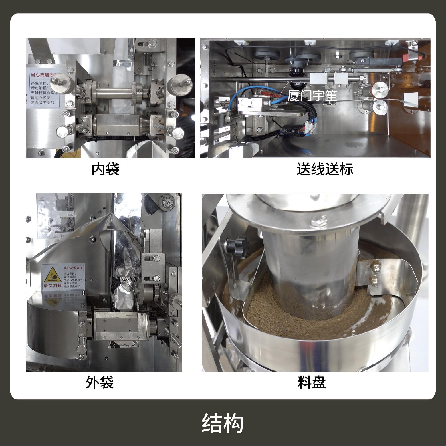 適用于茶葉、藥茶、保健茶草根類(lèi)等小顆粒物的內(nèi)外袋一次性包裝。